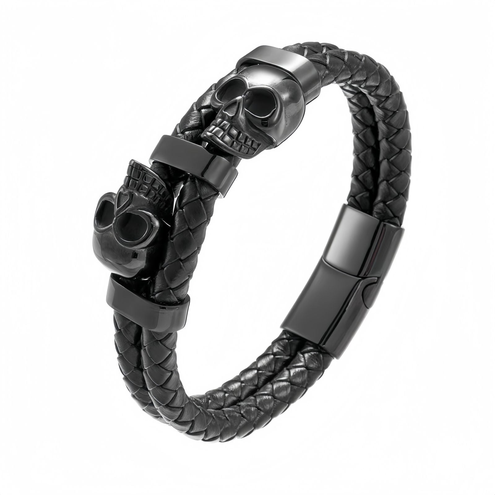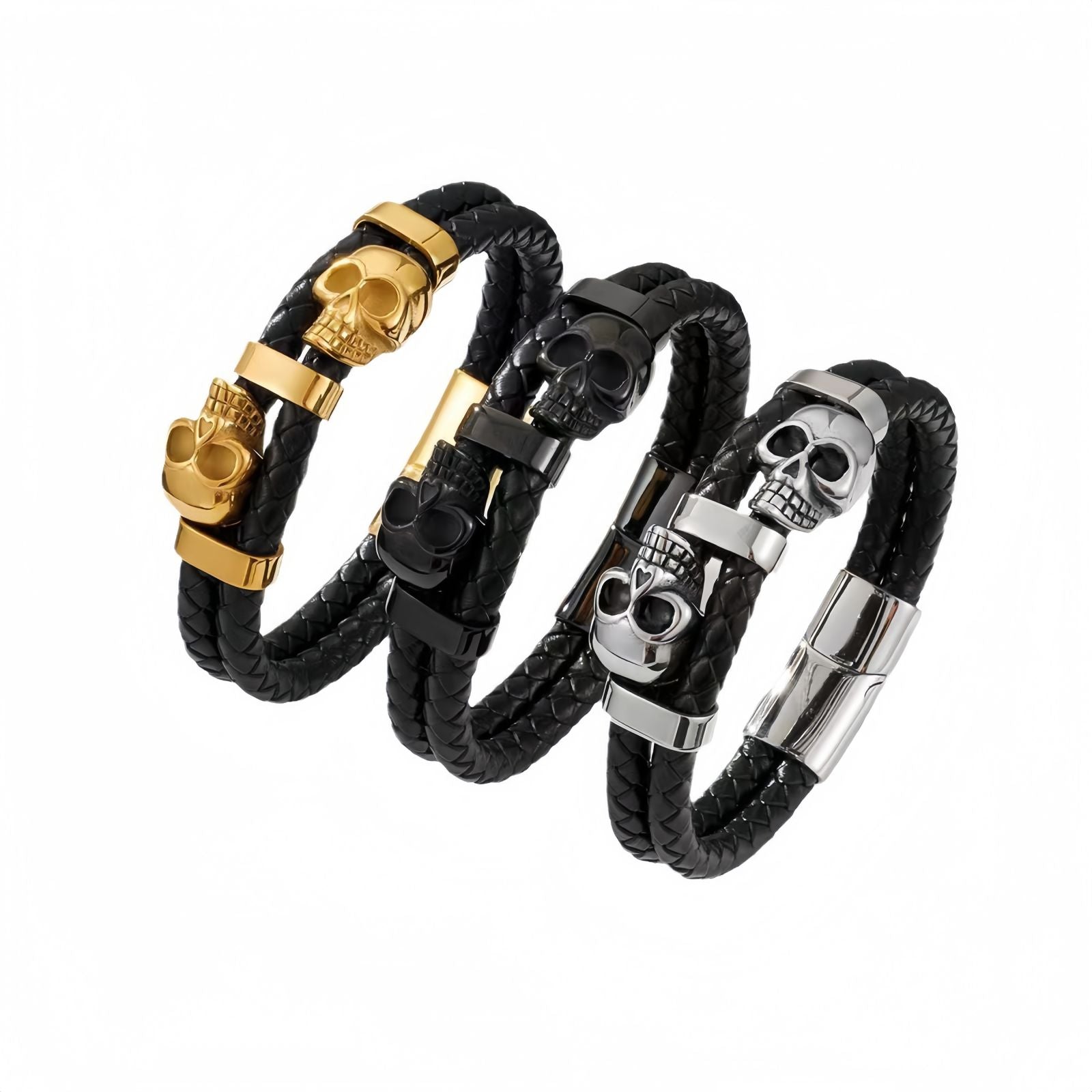- Premium braided leather with a bold zinc alloy skull centerpiece