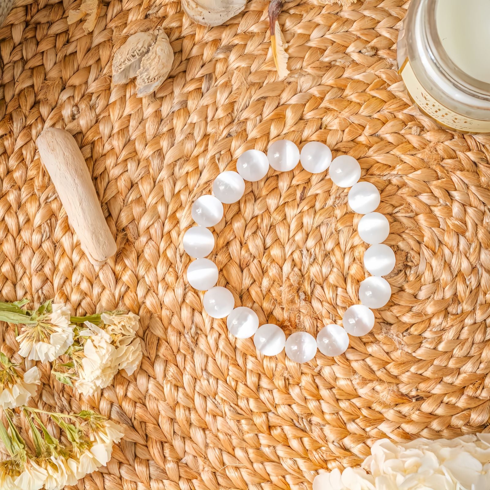 This cleansing cat eye bracelet is designed to soothe your energy, brighten your mood, and keep unwanted negativity at bay. The white luminous beads reflect a soft, calming glow, making it an ideal companion for meditation, emotional clarity, and everyday protection. Whether you’re feeling overwhelmed by life’s pressure or simply want a peaceful energy boost, this bracelet helps you regain balance and inner harmony.