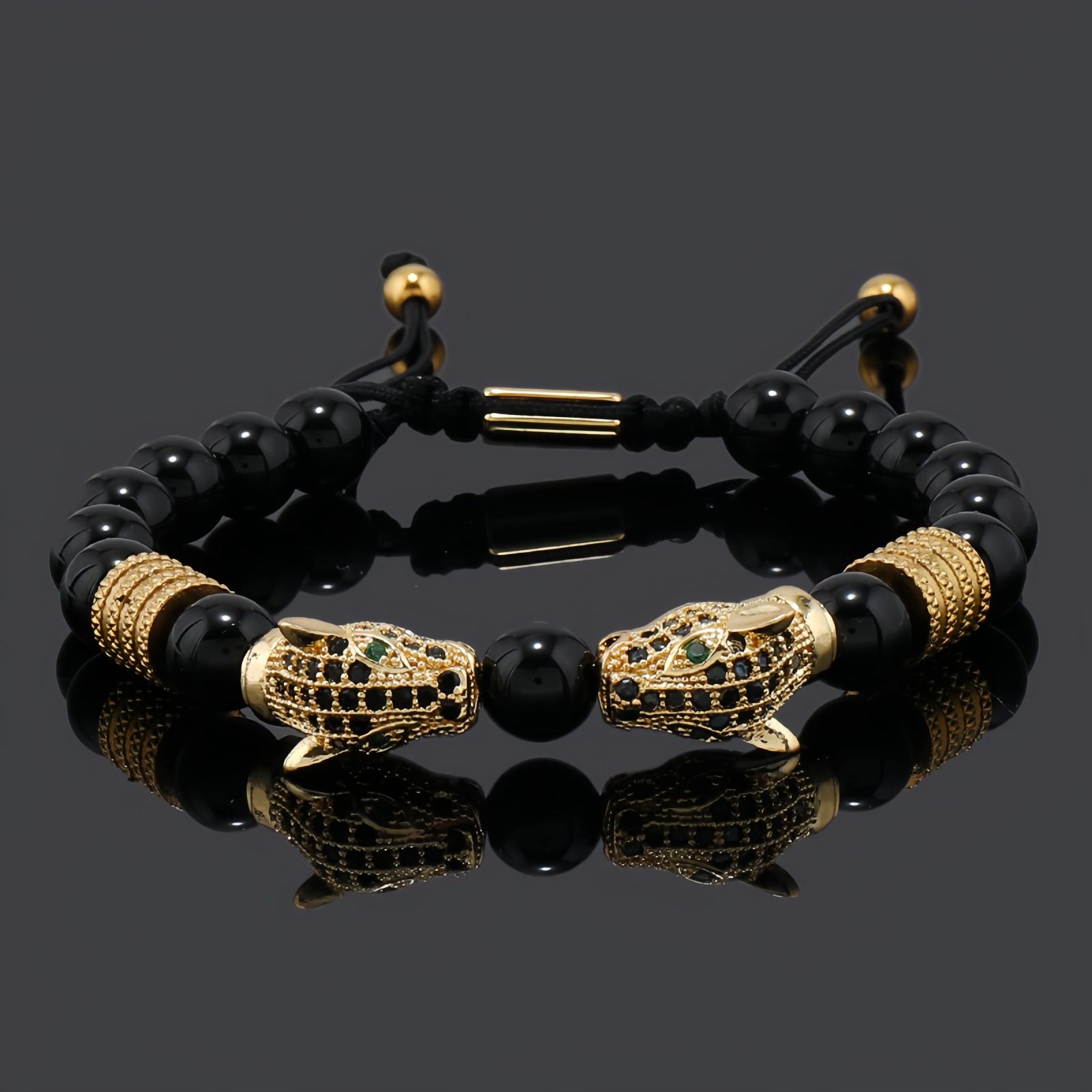 Bold, confident, and unmistakably eye-catching — this Dual Panther Head Beaded Bracelet is crafted for men who appreciate statement accessories. Featuring polished copper alloy panther heads paired with stainless-steel accent beads, it delivers a powerful aesthetic without being over the top.