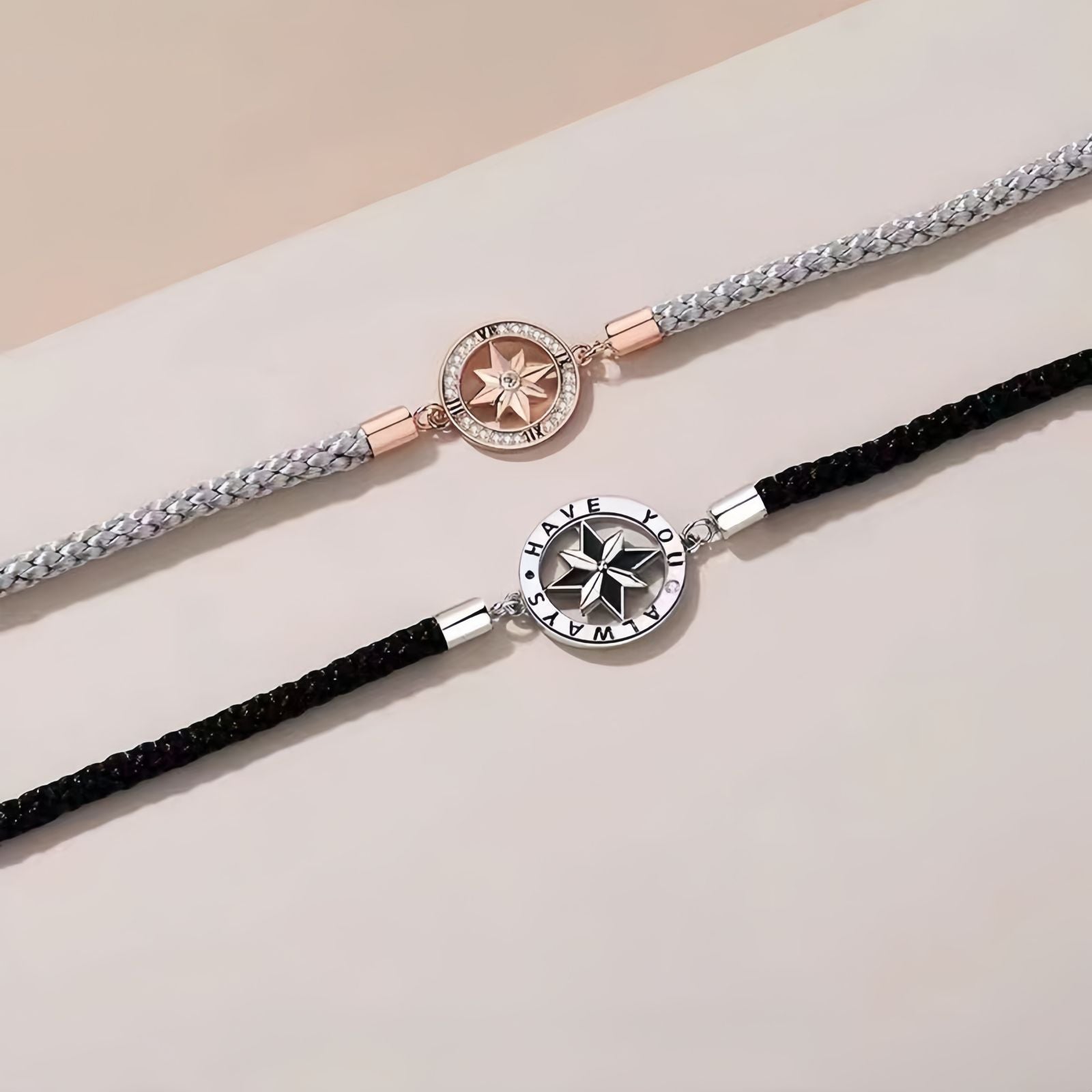 Inspired by the symbolism of the eight-point star and compass design, this matching couple bracelet set represents direction, trust, and staying connected no matter where life leads. The celestial motif reflects shared goals and mutual guidance, while the balanced design makes it easy to wear individually or as a meaningful pair.