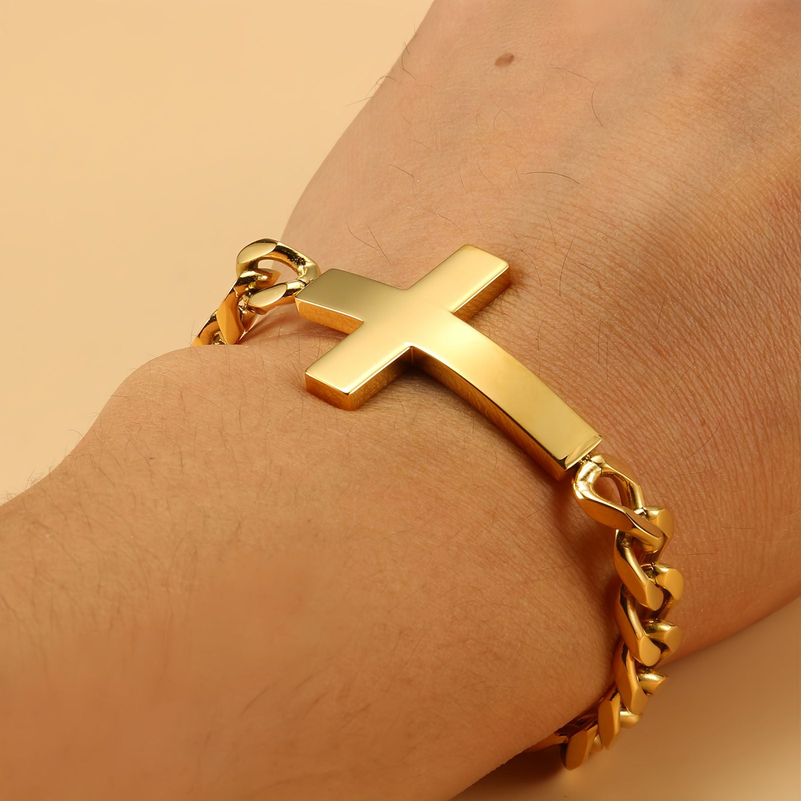 Horizontal Cross Gold Cuban Link Bracelet