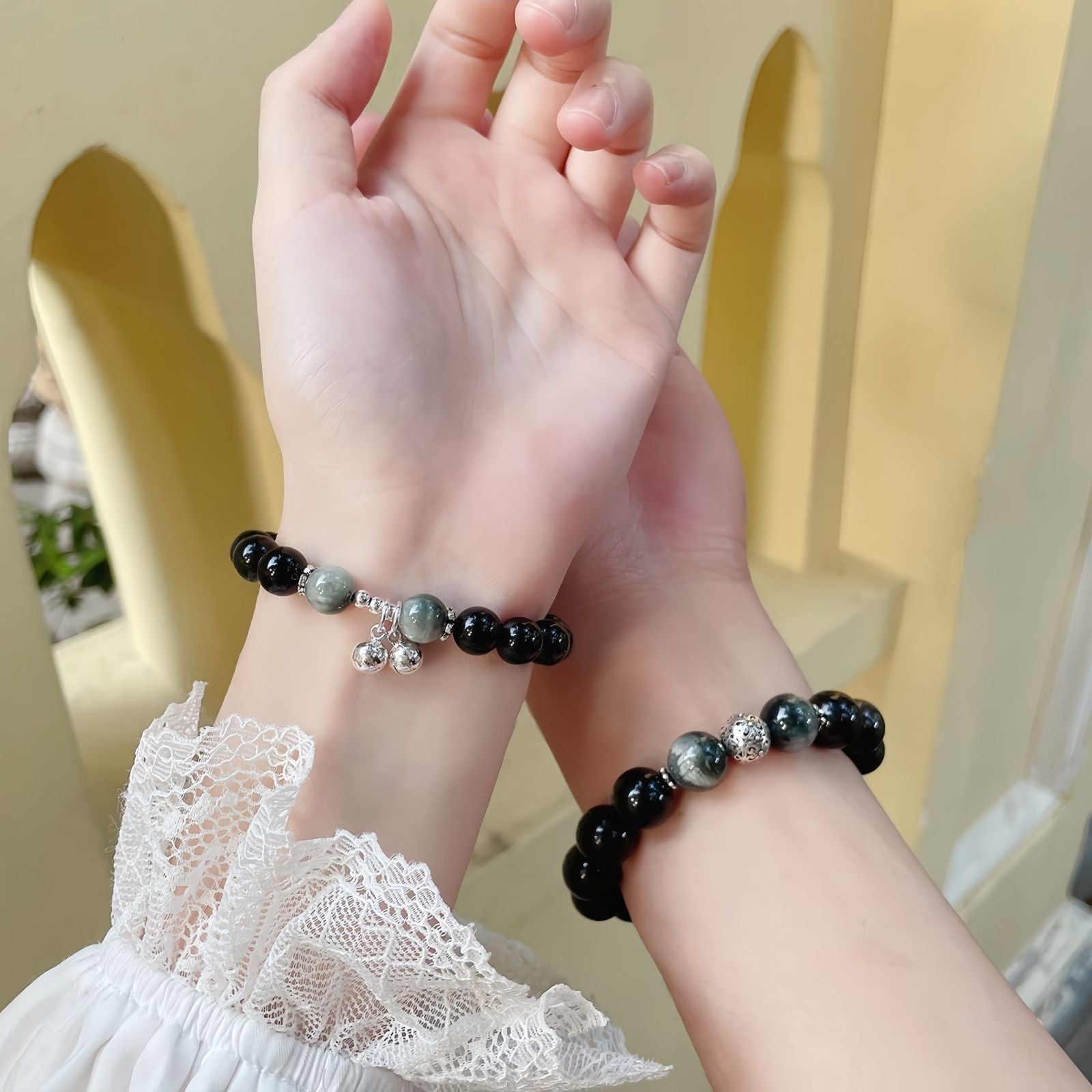 These matching Obsidian couple bracelets are a timeless expression of connection and balance. Crafted from natural black Obsidian crystal beads, each bracelet radiates grounding energy and inner calm. The silver bell charms add a delicate touch of sound and symbolism — representing love that resonates, even from afar.